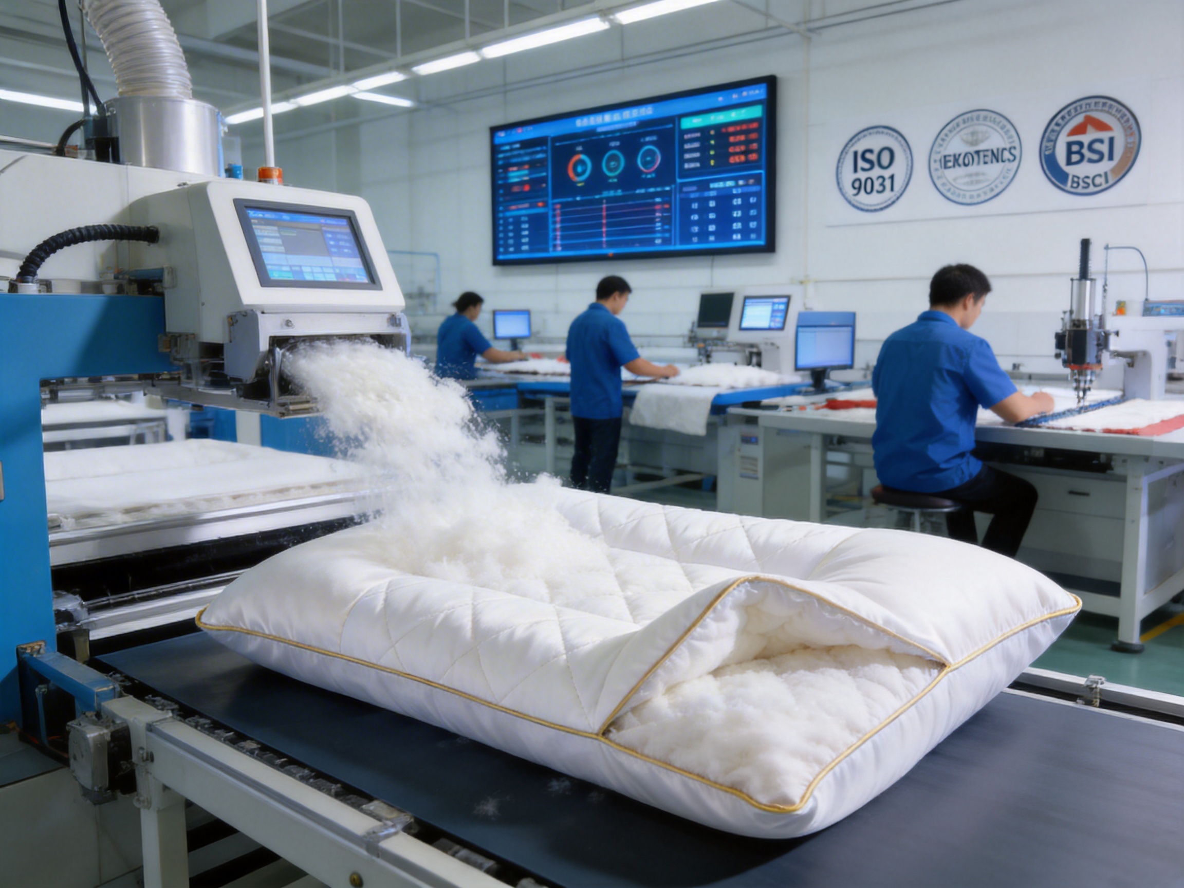 The manufacturer’s commitment to quality is evident in its certifications and quality control processes: - ISO 9001: This certification ensures that the manufacturer follows consistent, documented processes for quality management, from raw material sourcing to final product packaging. - ISO 14001: This environmental certification means the manufacturer minimizes its carbon footprint by reducing water usage, using recyclable materials, and implementing waste reduction measures. - OEKO-TEX Standard 100: This certification confirms that the pillow is free from harmful chemicals, including formaldehyde, heavy metals, and phthalates, making it safe for sensitive skin. - GRS (Global Recycled Standard): A portion of the polyester fill is made from recycled materials, aligning with the manufacturer’s commitment to sustainability. - BSCI: This ethical certification ensures that the manufacturer provides fair wages, safe working conditions, and respect for labor rights. Each pillow undergoes a 5-step quality control process: raw material inspection, fill consistency check, stitching durability test, shape retention test, and final packaging inspection. This rigorous process ensures that only 0.1% of pillows are rejected for defects.