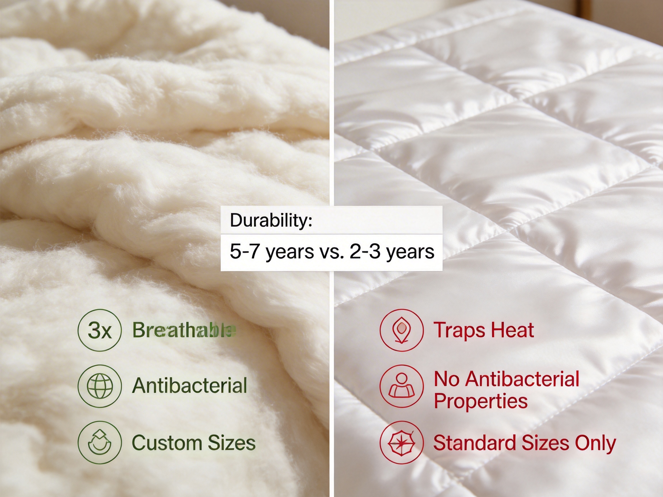 The cotton bamboo fiber quilt is more breathable, hypoallergenic, and sustainable than polyester-filled quilts. It also has natural antibacterial properties, which polyester-filled quilts lack. Additionally, the cotton bamboo fiber quilt lasts longer than polyester-filled quilts—up to 5-7 years vs. 2-3 years for polyester.