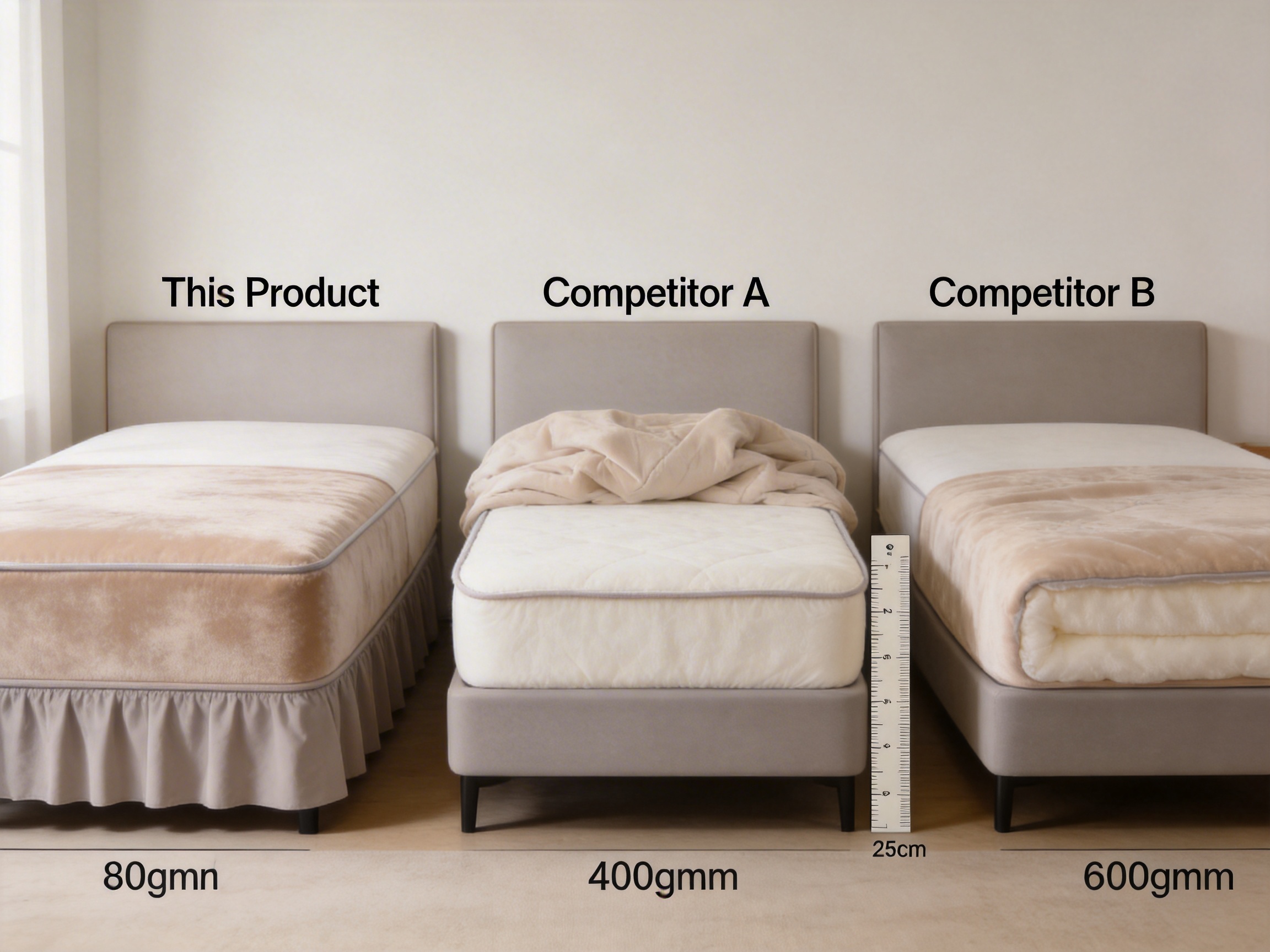 | Filling GSM | 800gsm Polyester Ballfibre | 300gsm Cotton | 600gsm Foam |
