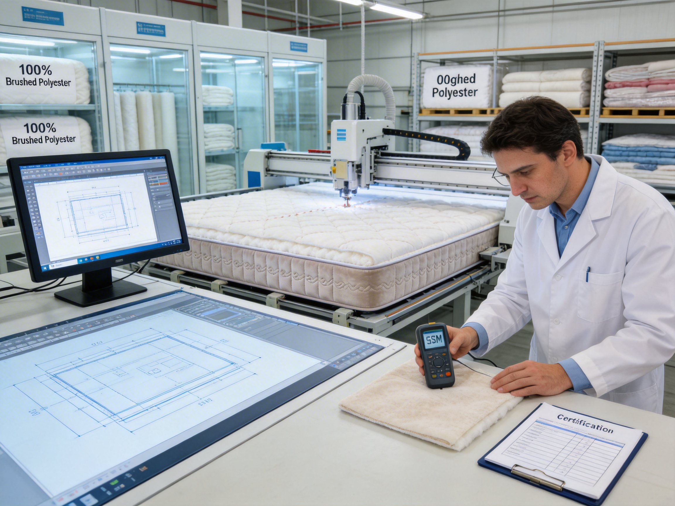 For example, the brushed polyester fabric is tested for softness, abrasion resistance, and color fastness. The polyester ballfibre filling is checked for loft, uniformity, and absence of impurities. Only materials that pass these tests move to the next stage of production.