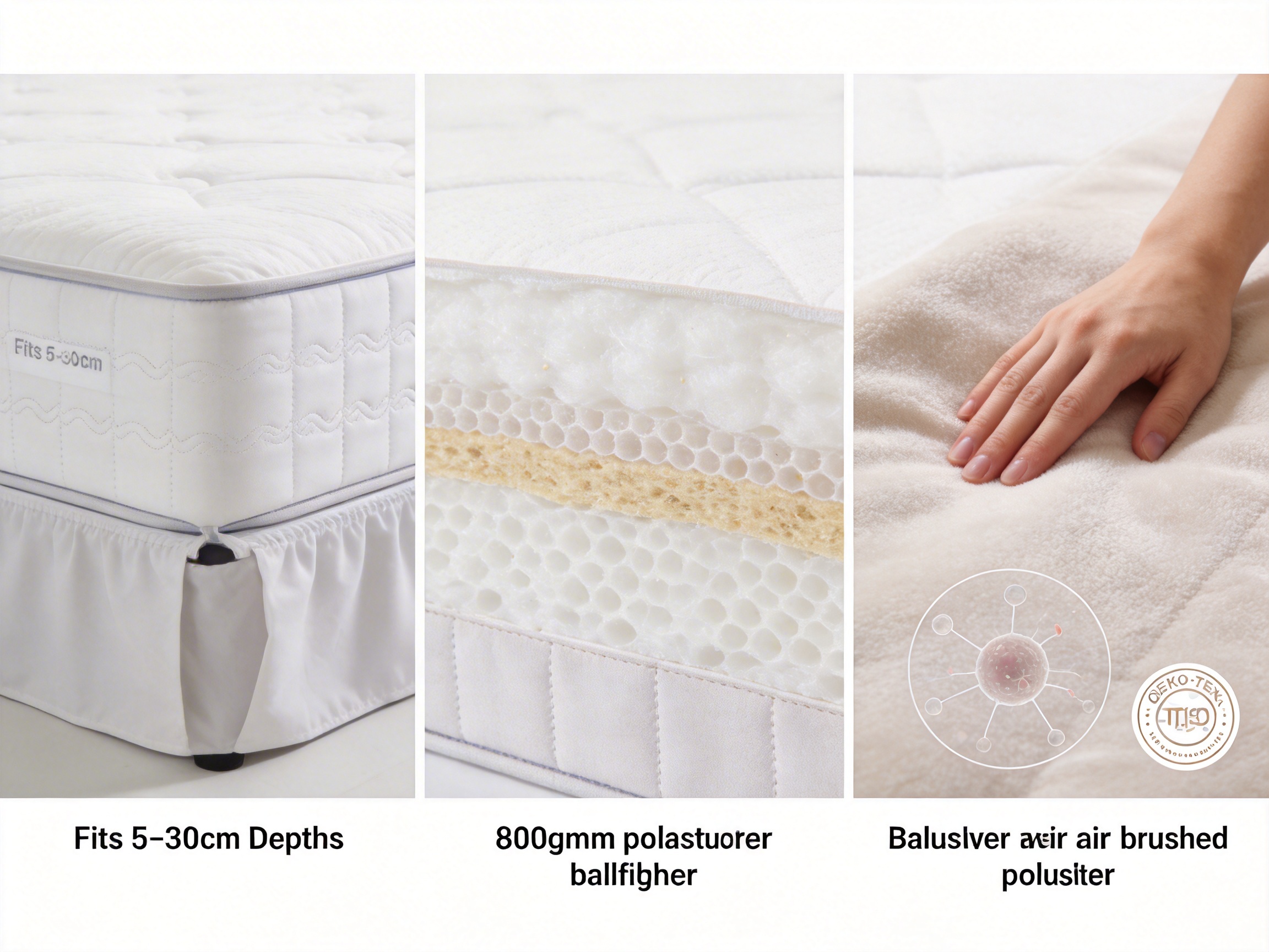 Many consumers associate polyester with stiffness, but this product uses high-quality, brushed polyester that feels as soft as cotton—without the downsides. The 90gsm brushed fabric is woven to be lightweight yet durable, resisting pilling, fading, and wear even after repeated washes. Unlike mixed cotton-polyester blends (common in cheaper competitors), 100% polyester eliminates the risk of shrinkage or stretching, ensuring the protector fits your mattress perfectly for years.