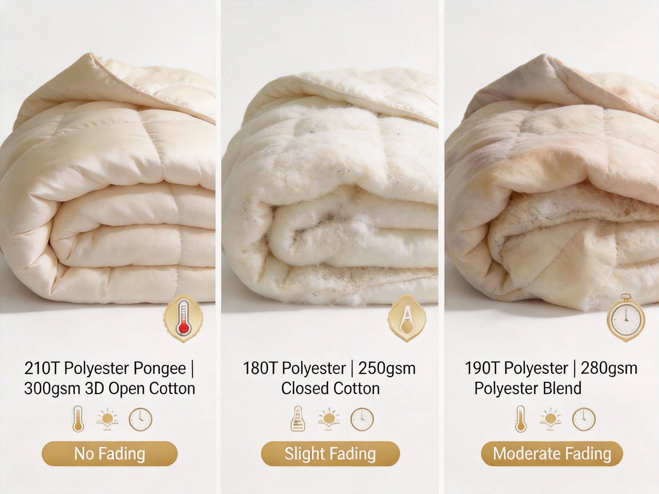 The outer layer is made from 210T high-density polyester pongee—a fabric known for its smooth, silky texture and exceptional durability. The "210T" designation refers to the number of threads per square inch (TPI), with higher TPI indicating a tighter weave. Most competitor quilts use 180T or 190T fabrics, which are looser and more prone to pilling, fading, and tearing over time.
