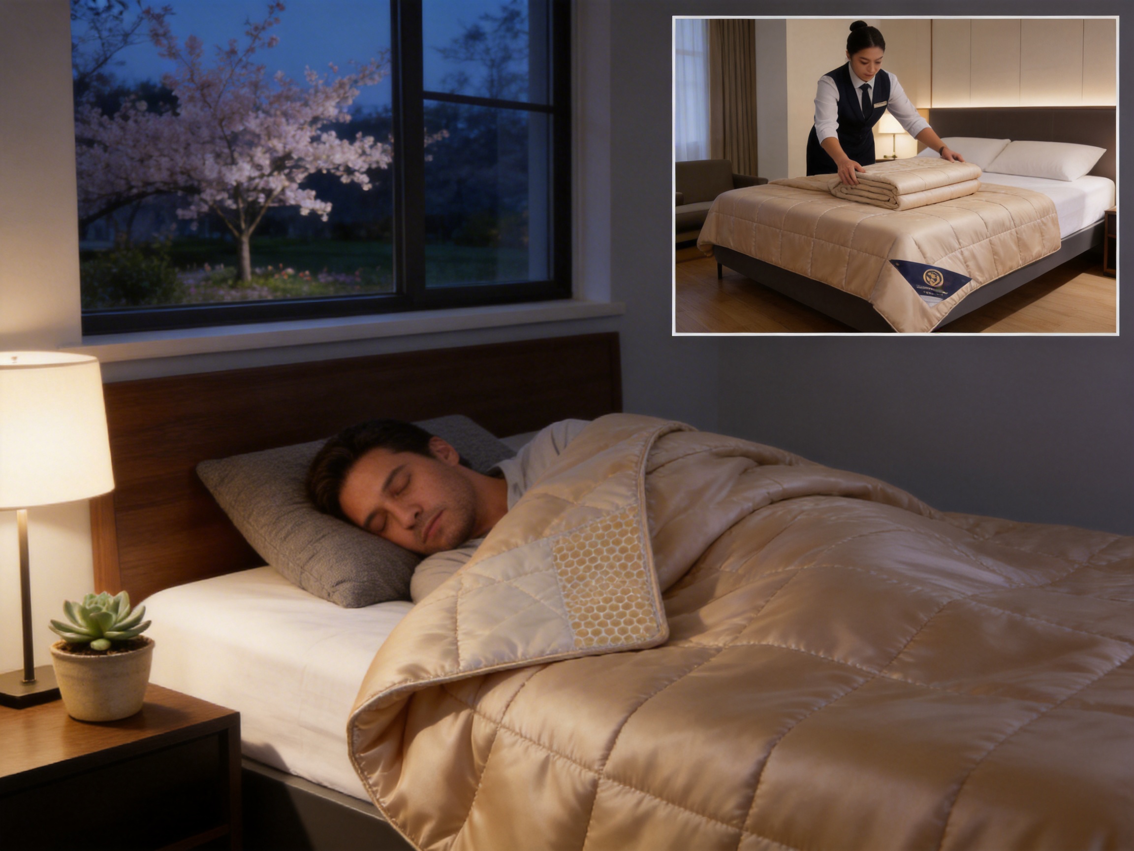 Consumers report that the quilt keeps them cozy on cool spring nights without overheating—thanks to the 3D open lining’s breathability. The soft, silky fabric feels gentle against the skin, reducing irritation and promoting deeper sleep. One customer review (from a hotel chain) noted: “Our guests love the quilt—they say it’s the perfect balance between warmth and coolness, and it looks great in our rooms.”