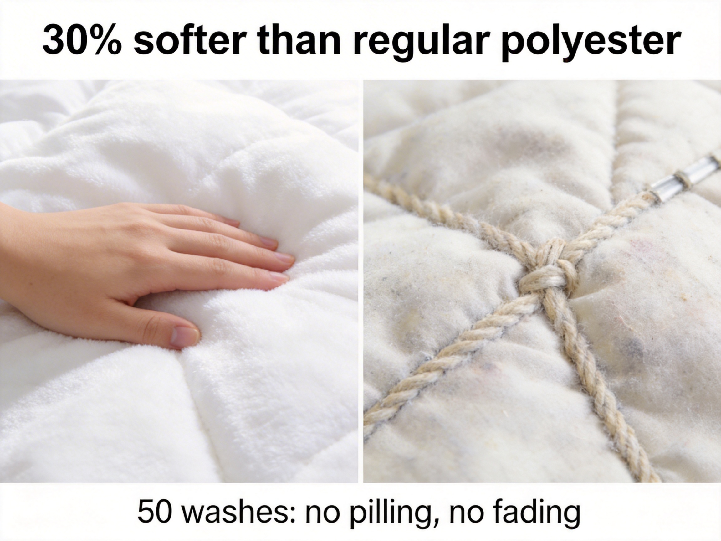A: Extremely durable. Each quilt undergoes 500 twist-untwist tests during quality control, and the connection is reinforced with high-strength nylon thread. It’s designed to last for 5–7 years with regular use.