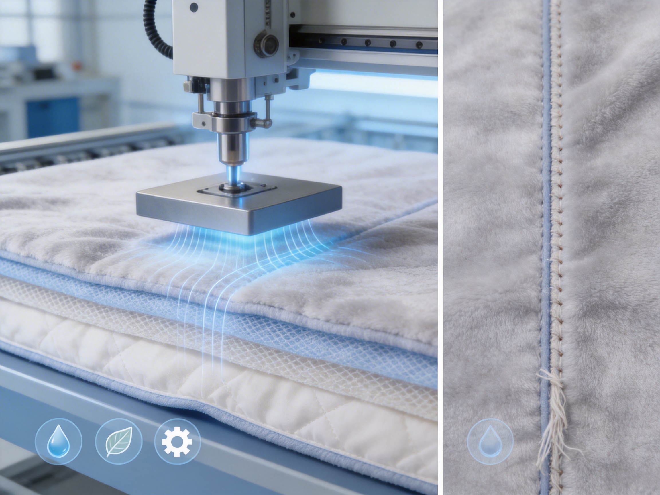 Ultrasonic bonding is the blanket’s most innovative feature. Here’s how it works: fabric layers are placed between a vibrating sonotrode and anvil. High-frequency vibrations generate friction, melting synthetic fibers at bond points. When cooled, fibers solidify into a permanent, seamless bond. This process offers four key benefits over traditional stitching: